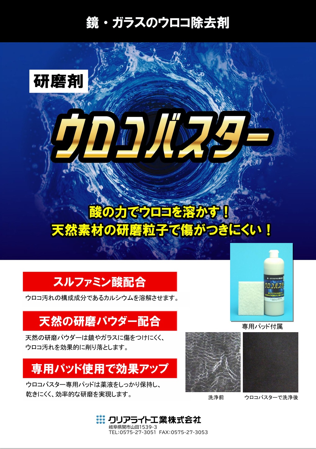 硬い人工ダイヤモンドが汚れを落とす!つやげん 『鏡・ガラスのウロコ取り』