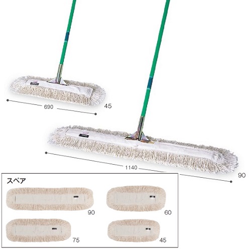 体育館などの広いフロアのから拭き・水拭きに適した丈夫なモップです。