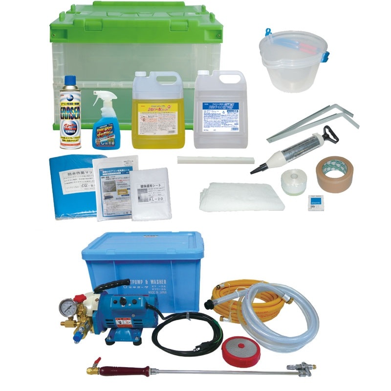 エアコン洗浄剤と高圧洗浄機で、家庭用エアコンが洗浄できるセットです。
